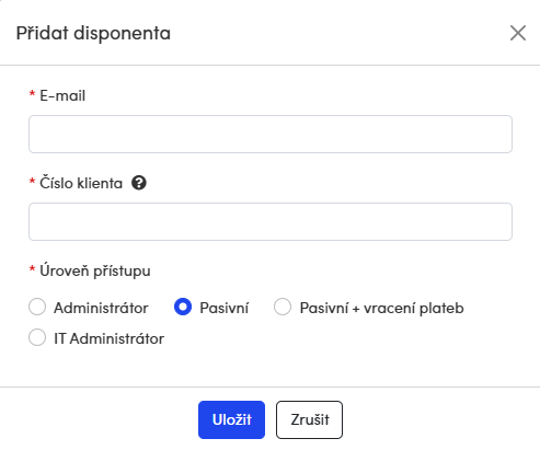 Fill out the authorised user's email address and customer ID (to be provided by the authorised user), set the level of access (passive by default) and enter your password to confirm. This process only applies to situations where the user has already signed up for ThePay and been assigned the customer ID. Otherwise, the user must first sign up for ThePay and obtain the customer ID.