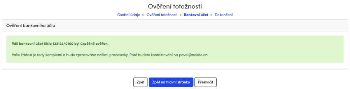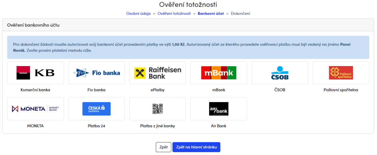 In the final step, they will send a payment of one crown from an account in their name, completing the process. After successful verification on our side, the user will gain access to all active functions corresponding to their level of authorized access.