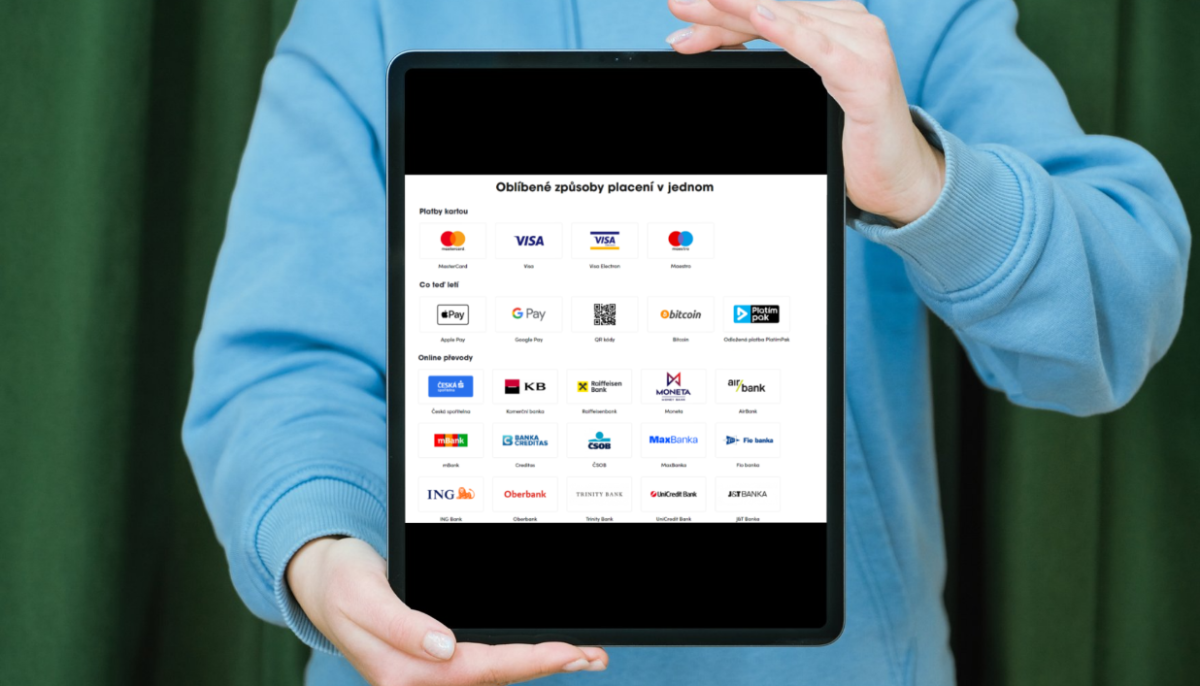Zákazníci zde najdou klasické platby kartou, ale také oblíbené platební metody Apple Pay, Google Pay, platbu QR kódem nebo kryptoměnami. Samozřejmostí jsou také bankovní tlačítka, odložené platby nebo PSD2.